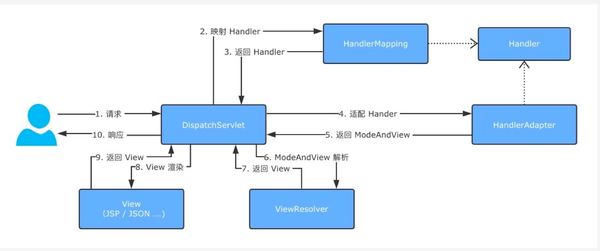 请求到经过处理方法处理后,最终返回的是 ModeAndView 。可以从 Spring MVC 框架模型 看出,最终经过 ViewResolver 视频解析器得到视图对象 View。可能是我们常见的 JSP ,也可能是基于 ThymLeaf 、FreeMarker 或 Velocity 模板引擎视图,当然还有可能是 JSON 、XML 或者 PDF 等各种形式。