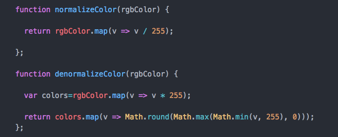 normalizeColor是归一化颜色的函数,denormalizeColor是对归一化的颜色,处理成正常颜色数值的方法。