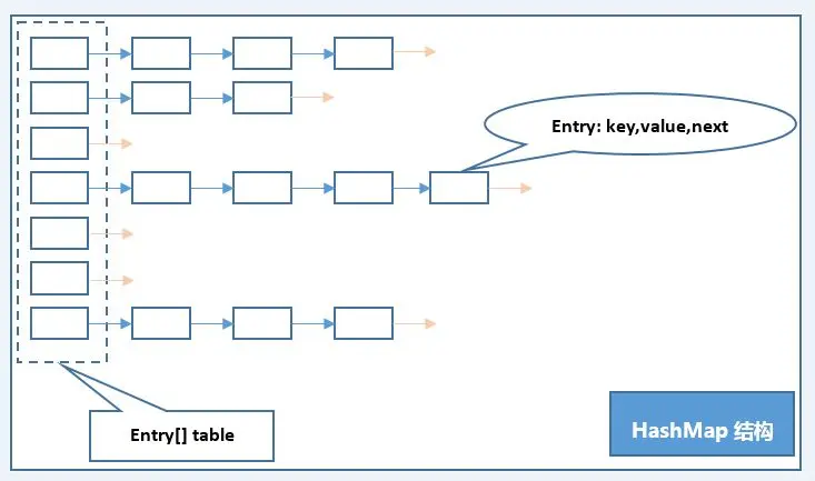 //由这个方法可以看出,遍历HashMap时,顺序是按照哈希桶从低到高,链表从前往后,依次遍历的。属于无序集合。