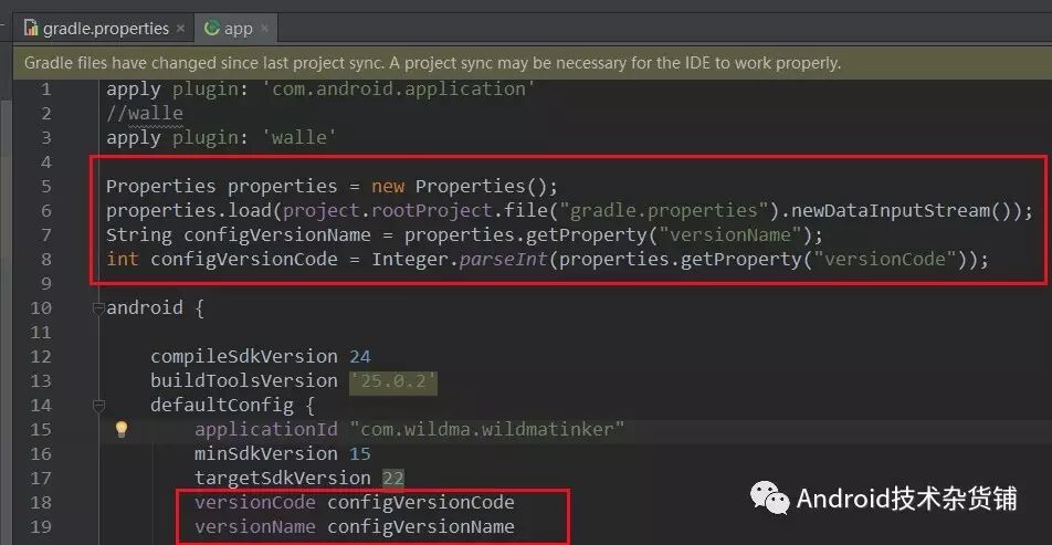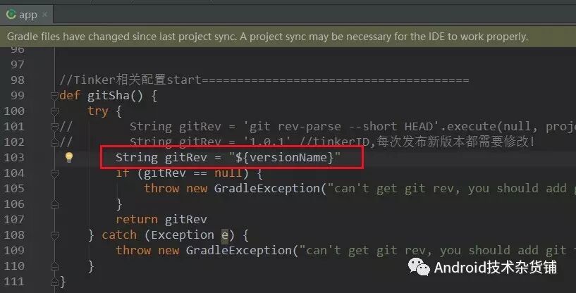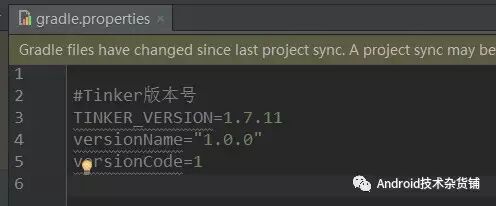 tinkerId主要作用是区分当前打出的补丁包是基于哪个版本的apk,也就是说当前打出的补丁包能修复哪个版本的bug。每次发布版本需要保证tinkerId一定是要唯一性的,Tiker官方推荐使用git版本号或者versionName作为tinkerId。我自己项目使用的是versionName,你可以将versionName配置在项目的gradle.properties文件中,这样就不用每次都修改tinkerId了。如图: