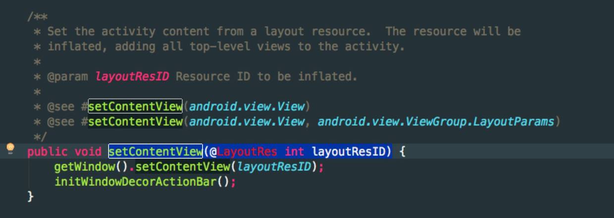随后上述步骤也是installDecor()方法的主要代码,因此继续返回到setContentView方法继续查看(把setContentView的图继续贴下来避免返回去翻图):