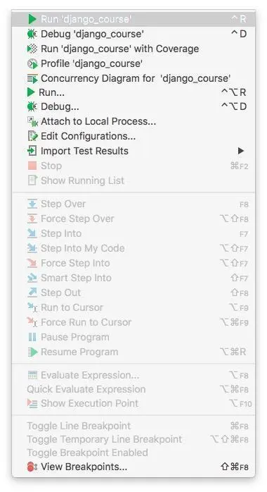 我们就选择其中的第一个,Run 'django_course'即可。