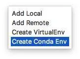 PyCharm充分利用了虚拟环境的强大特点。点击Create Conda Env后,软件弹出以下的对话框。