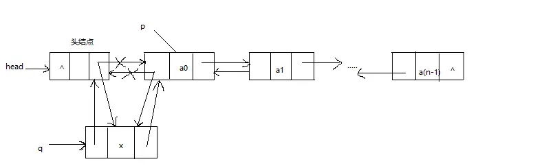 p指向双链表的某一个结点,在p结点之前插入q结点的示意图如下所示: