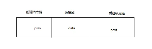 data保存当前结点的数据元素,prev指向前驱结点,next指向后继结点。