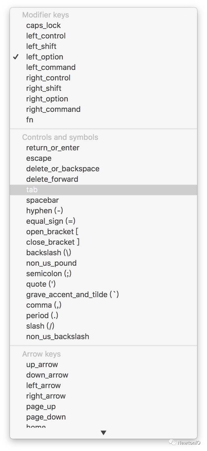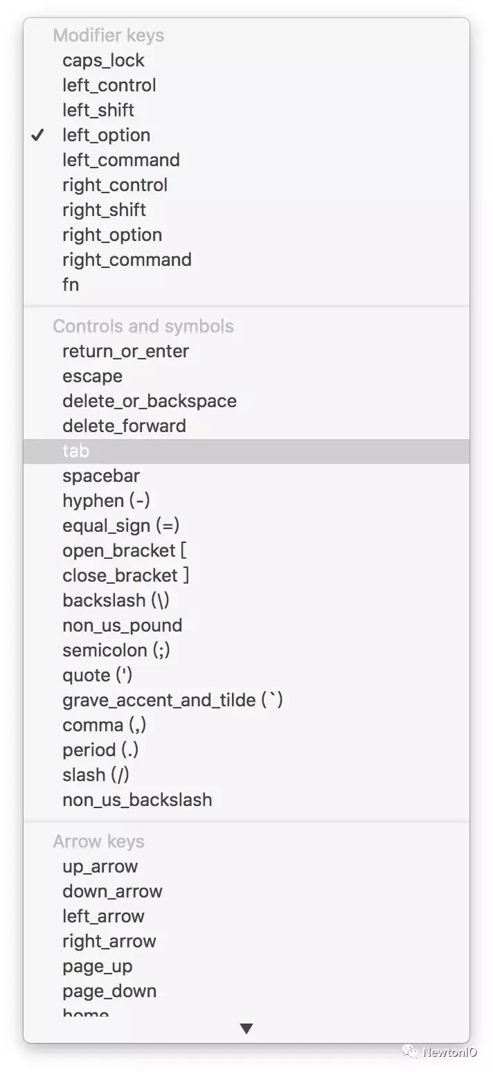 而在 Karabiner 里提供的选择非常多,基本可以覆盖绝大多数外接键盘可能用的键位。