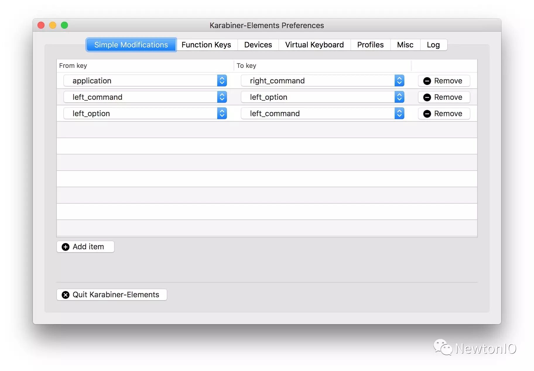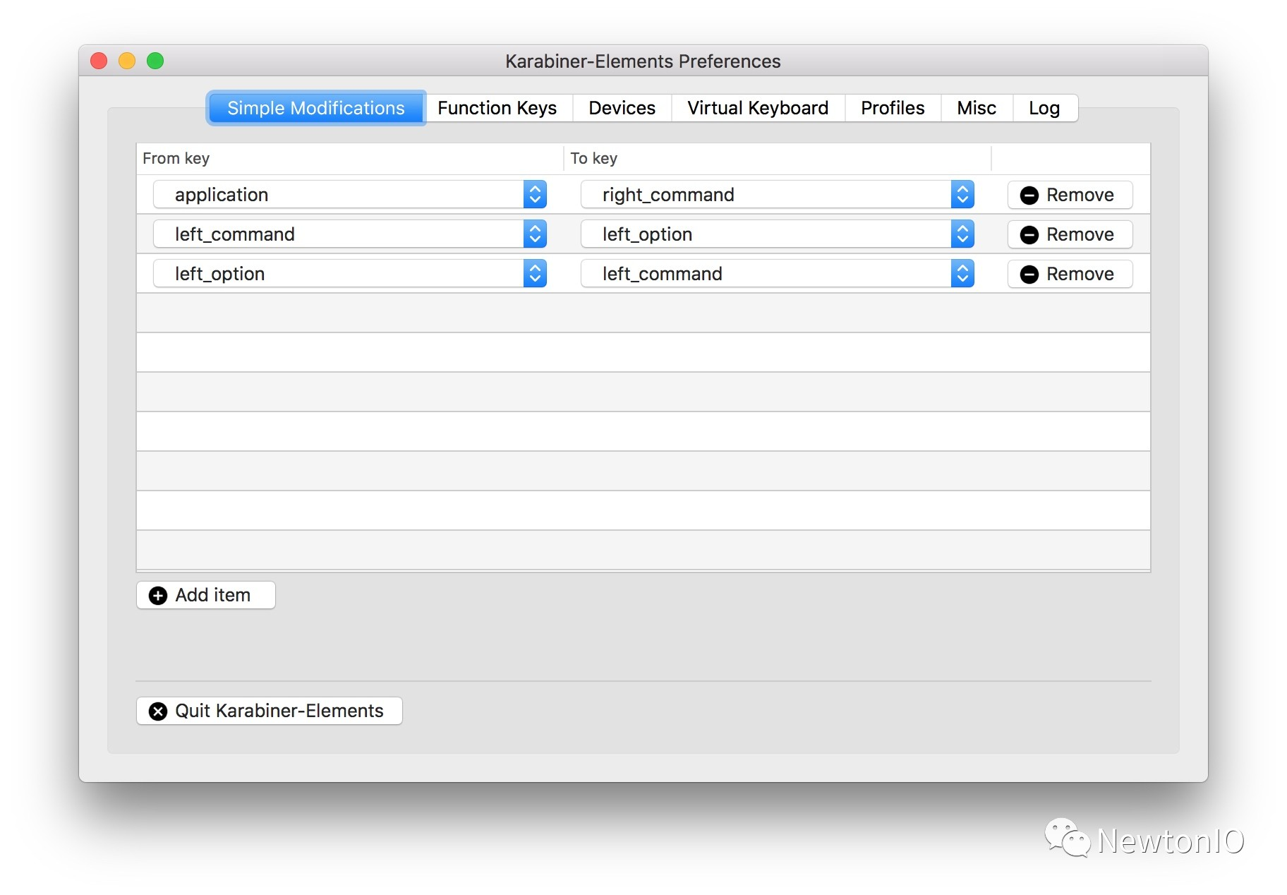 需要注意的是 Karabiner 的配置会覆盖 macOS 自身的键盘配置,如果之前用默认的设置修改过修饰键等映射,使用 Karabiner 后都需要在 Karabiner 里配置一套相同的设置。