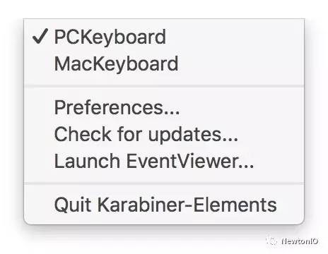 很多时候都可能需要维护不止一套配置,比如在办公室或家里会用外接键盘,带着笔记本出门一般只会用 Mac 自带的键盘,而 Karabiner 默认是通过点击菜单栏图标来切换配置: