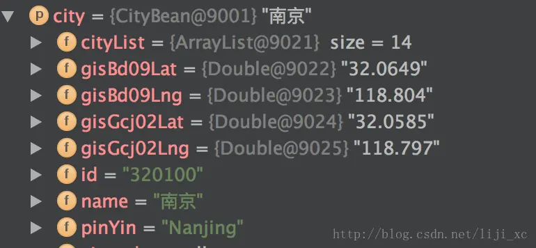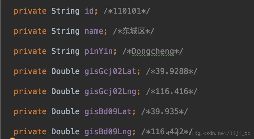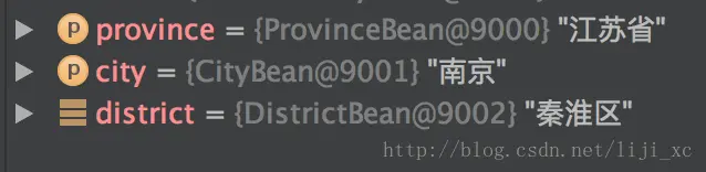 ProvinceBean , CityBean , DistrictBean 同样的数据结构