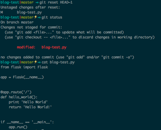 可以看到,我增加的那一行已经没有了,git log中也没有了那次的提交记录: