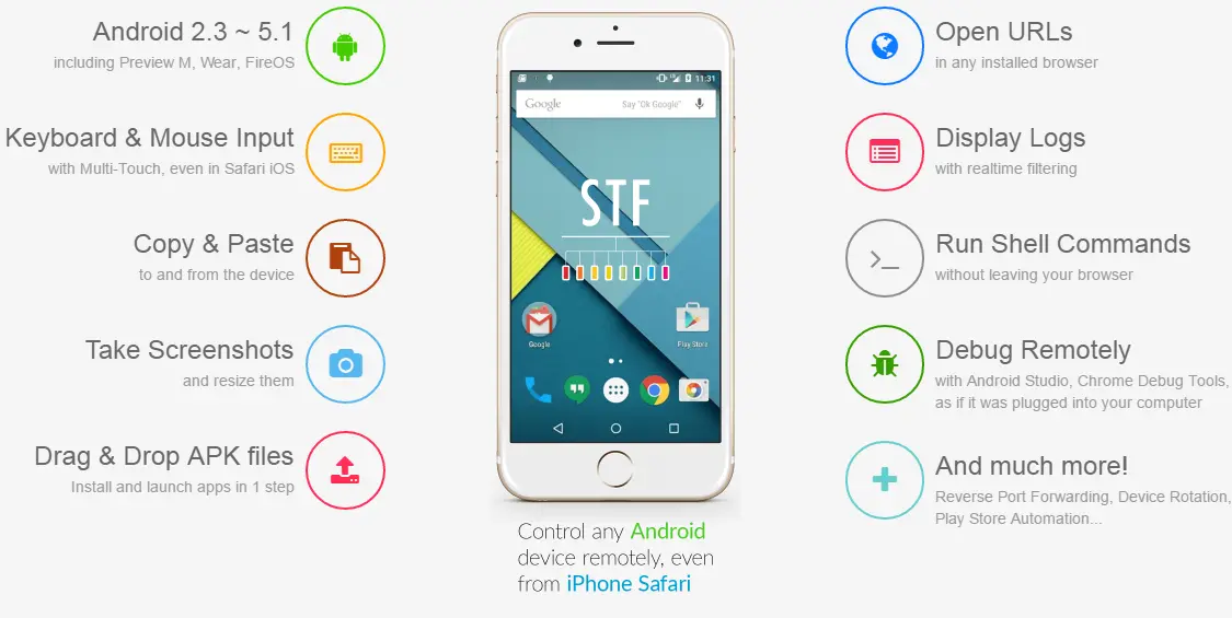 STF(or Smartphone Test Farm)是一个 Web 应用程序,用于从舒适的浏览器远程调试智能手机,智能手表和其他小工具。