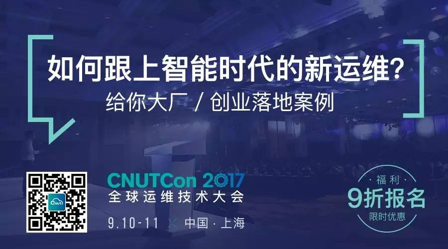 推荐一个技术人不可错过的线下技术盛会,CNUTCon 全球运维技术大会将于 9 月 10-11 日在上海举行,大会聚焦“智能时代的新运维”,邀请了来自 Google、Uber、BAT、京东等公司一线技术大咖分享他们在最新运维技术实践过程中遇到的坑与经验,现场为你解疑答惑!点击“阅读原文”了解更多精彩!9 折报名最后一周,欲报从速!