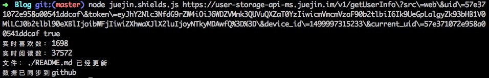 由于昨天掘金上线了自己的小盾牌,感觉非常酷有木有!相关文章在这里。看到后发现是分享到掘金的文章才可以生成这样一个盾牌,可是我的文章在专栏里我也想要一个放到github的博客里怎么破!所以我决定自己写一个工具好了。我希望它可以实现: