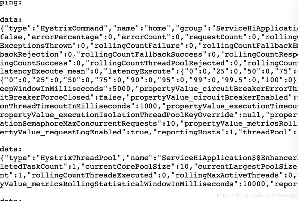 打开http://localhost:8762/hystrix.stream,可以看到一些具体的数据: