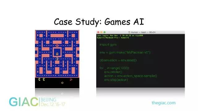 GameAI是游戏人工智能,通过图像的结果用增强学习和Qlearning的算法,就可以实现它自动最大化地得到分数。
