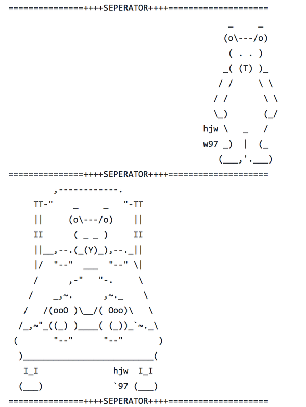我准备了 animals.txt 里面存放的是ascii的动物图像,像这样: