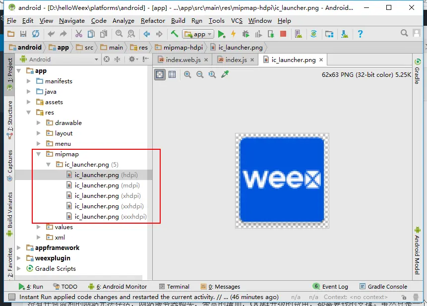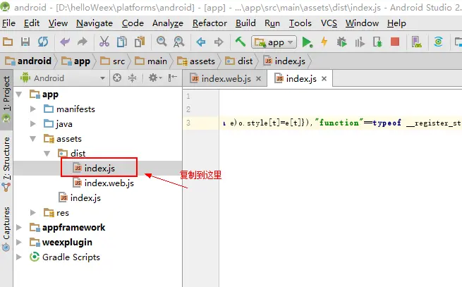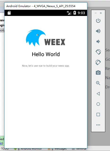 如果你没有安装weexpack这个过程会慢一点,请耐心等待。等出现Creating a new weex project.说明项目构建完成了,我们可以到项目目录中去看一下。