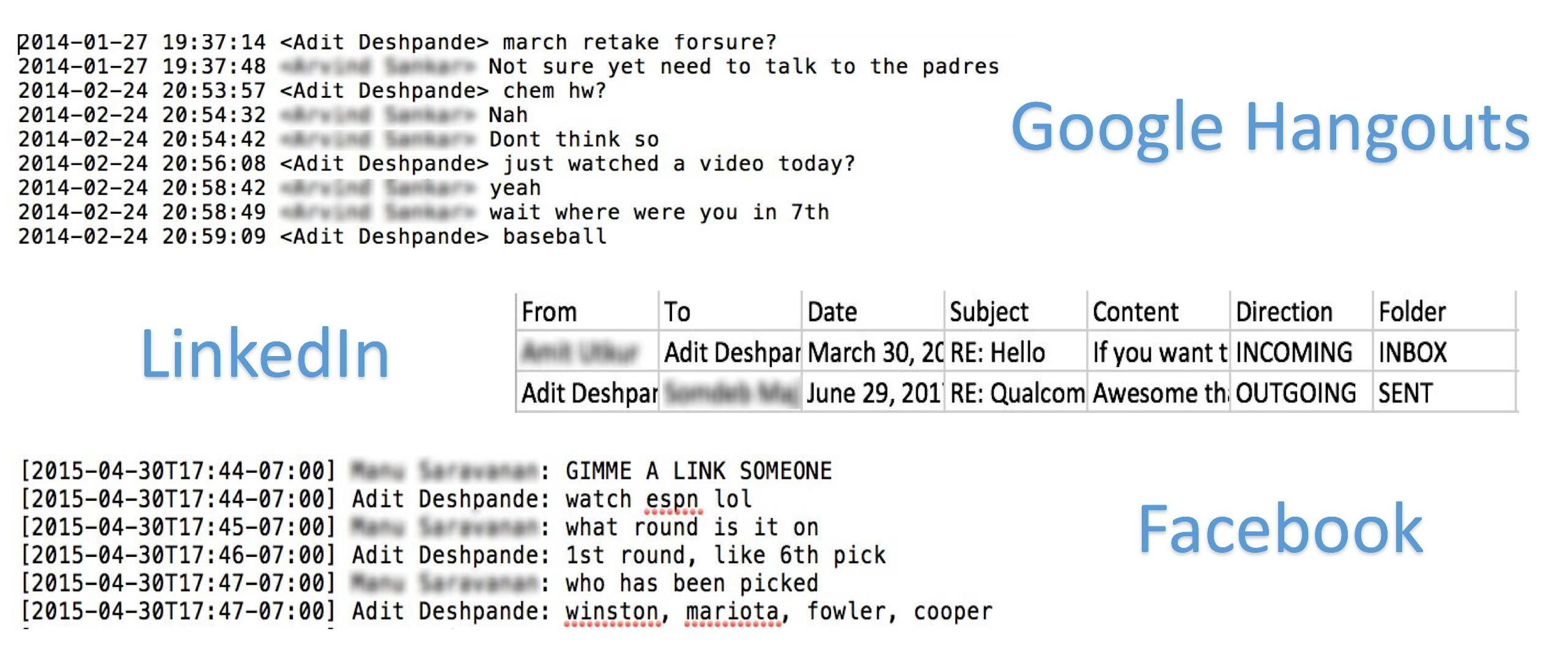 Facebook:这是大部分培训数据的来源。facebook有一个很酷的功能,让你可以下载你所有的Facebook数据。包含所有的信息、照片、历史信息。