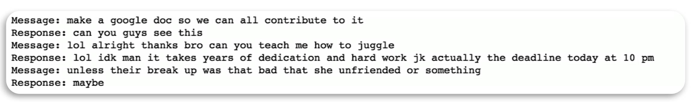 从CreateDataset中提取所有(消息、响应)对py或您自己的脚本。