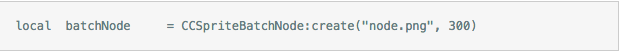 好在游戏引擎可以使用CCSpriteBatchNode来批量绘制精灵,创建CCSpriteBatchNode对象的代码如下: