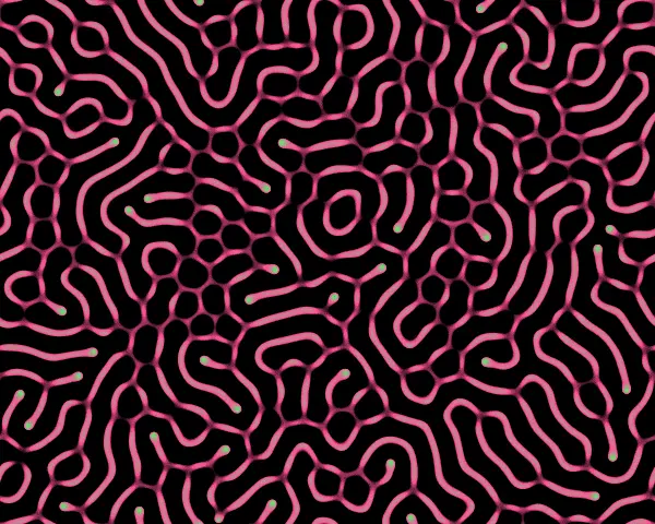 反应扩散方程模拟 [View Code] [Wiki] [View Webm Animation] [Pmneila's Javascript Animation]