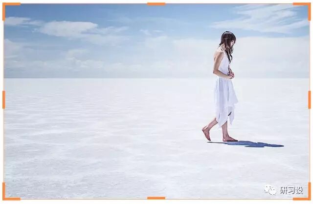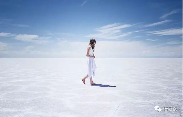 当主体带有指向性时,上图是高度留白的摄影照片,第一张人物采用居中构图,修改左右两侧的面积会传递不同的心理感受,放大人物前方的留白面积会给人向往未来的印象。