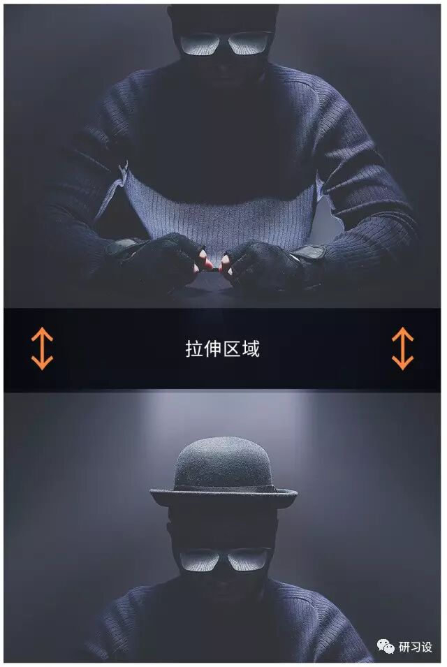 为了让版面显得更加丰富,这里采用国外较常见的处理方式让画面更加具有形式感,将一张照片通过裁剪的方式拆分成两张画面,这里需要注意的是尽量让两张图片产生差异性。(这与上方“改变传递的主题”的原理相似)而中间缺少的部分通过拉伸边缘的方式补全。