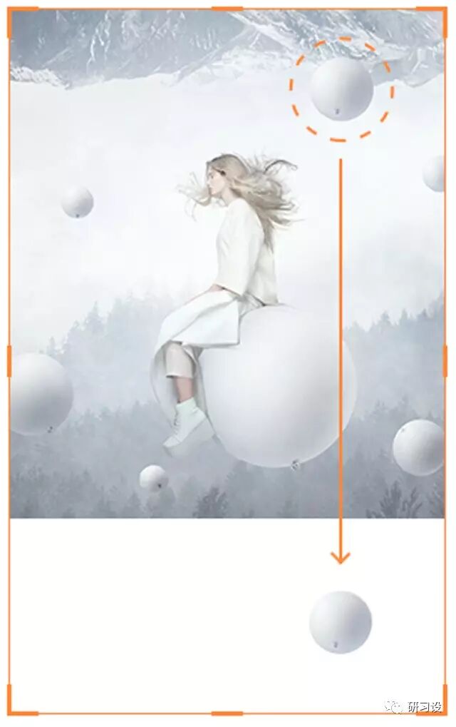 上图是经过修改后的案例,将主体缩小后,周围的空间变得开阔,使得画面有了喘息的空间。整体给人高端和有格调的印象。