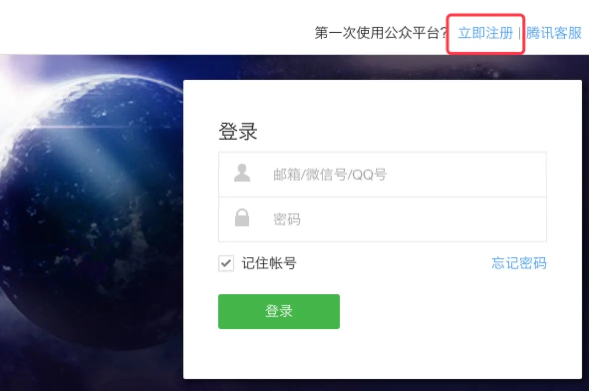 - 打开小程序注册地址,浏览 3 秒后,请点击页面右上角