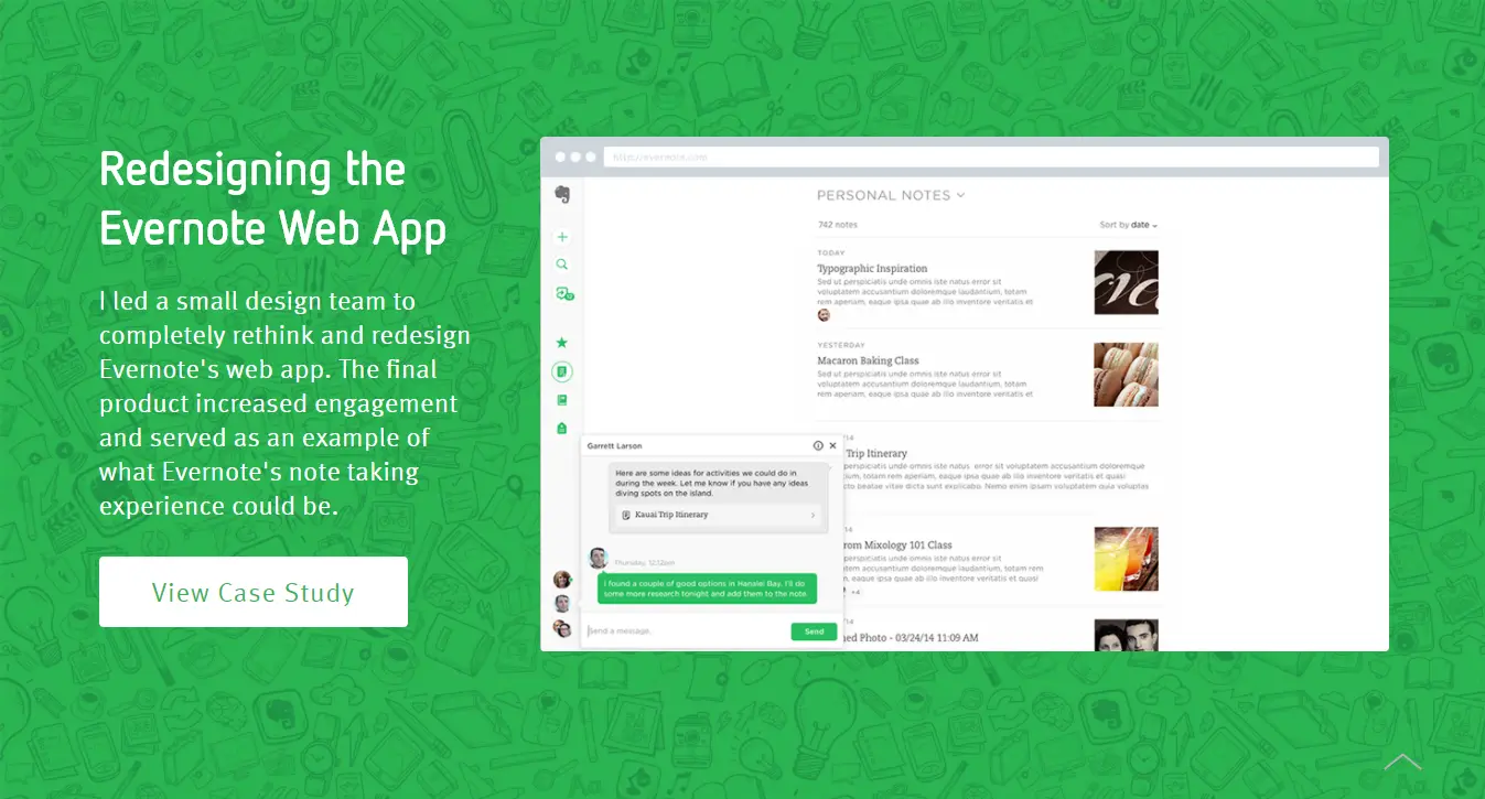 前 Evernote 的设计总监Joshua Taylor 将他的UX设计项目以令人信服的视觉化的故事,呈现出来。他全面地将他的从一开始所面临的挑战,到整个设计过程,线性地呈现出来。