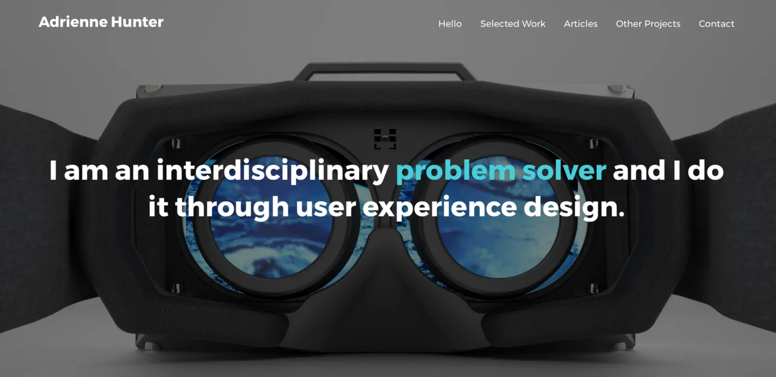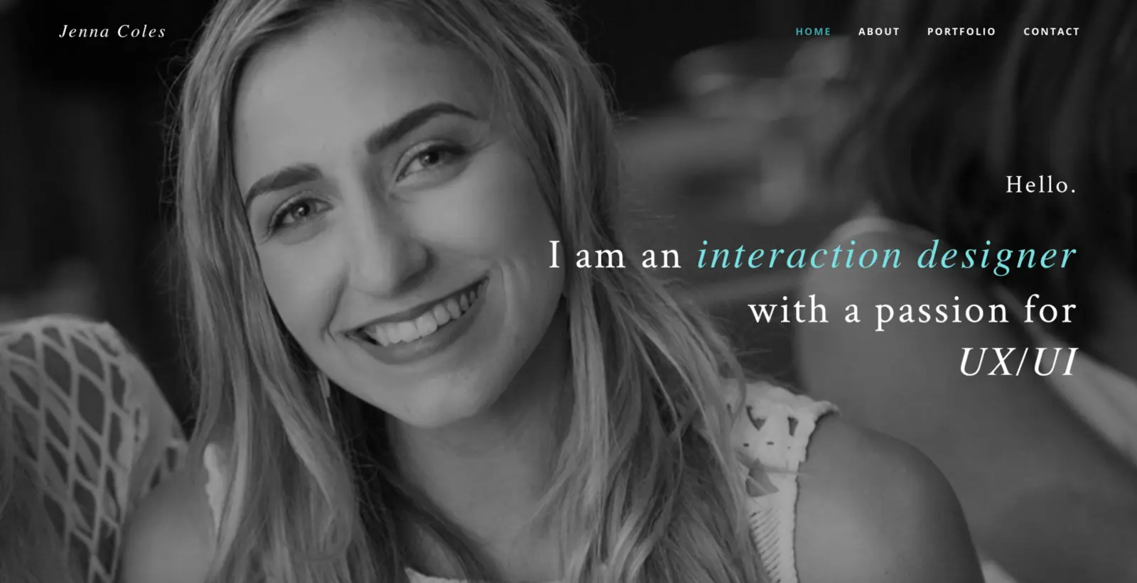在 Jenna Coles 的UX作品集网站中,她从首页就开始介绍自己的各种技能。