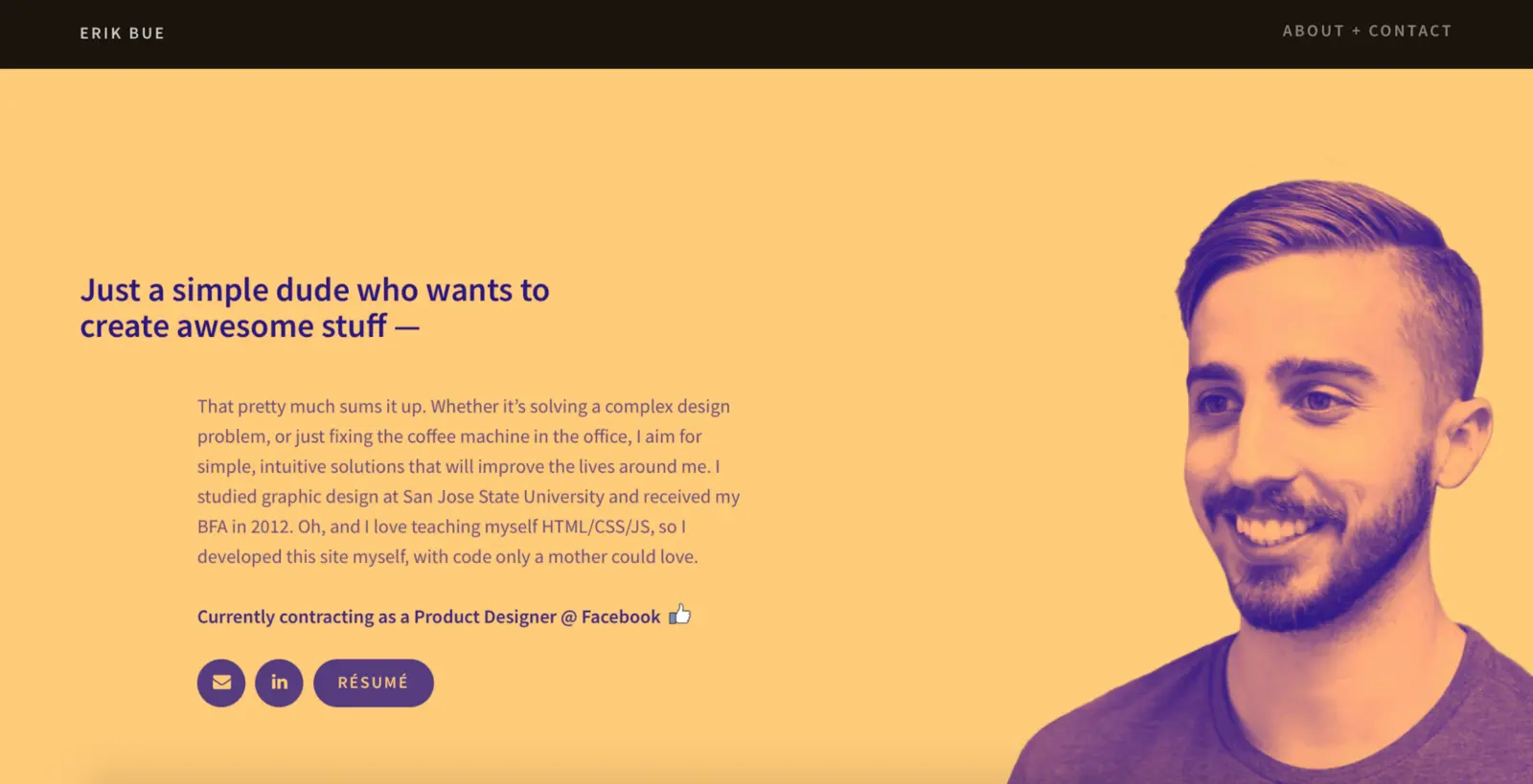 Erik 通过将幽默的元素注入到自己的设计项目当中,让他的作品集看起来个性十足,非常有趣。