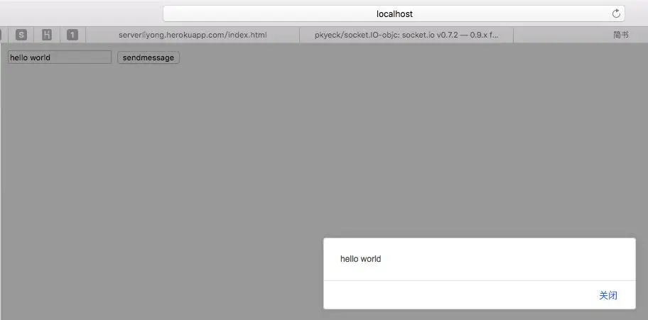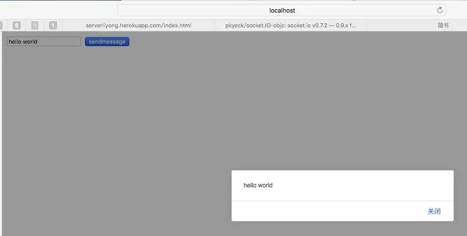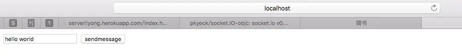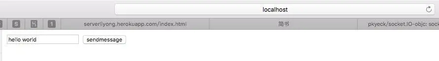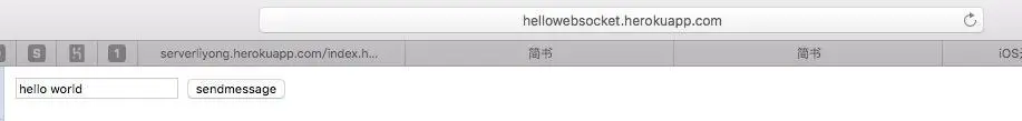 然后我们启动iOS端,浏览器中输入地址hellowebsocket.herokuapp.com/index.html,文本框中输入内容,iOS端就会显示了,效果如下: