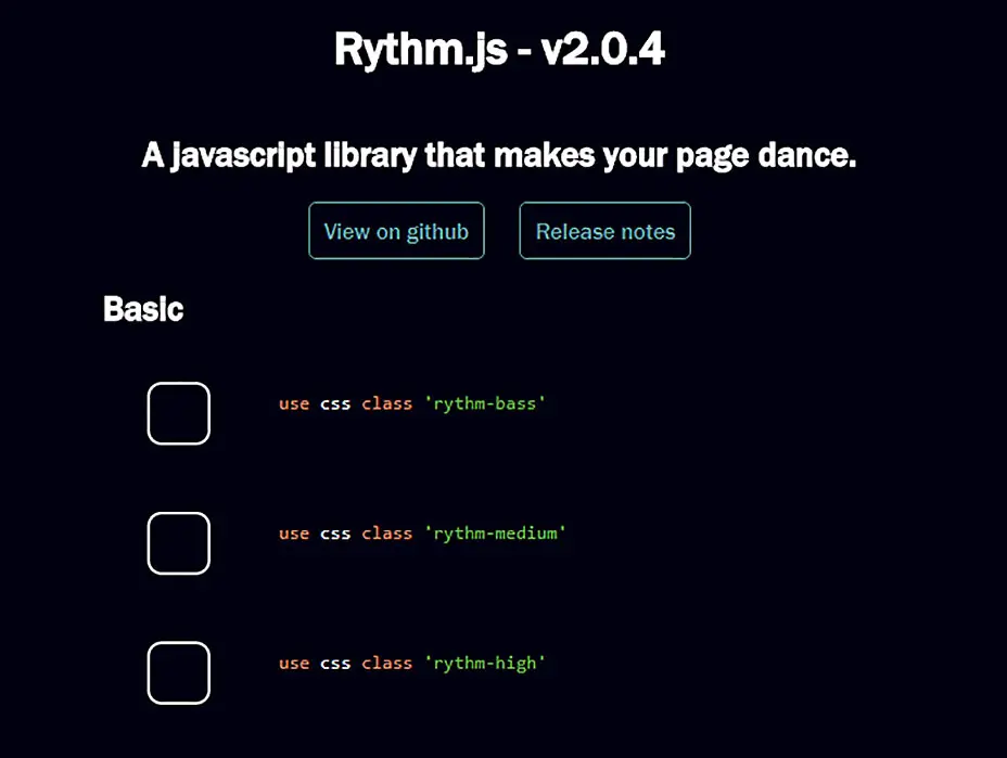 Rhythm.js 能够为你带来有趣的迪斯科风的动效,它能够营造出类似舞蹈的视觉效果。