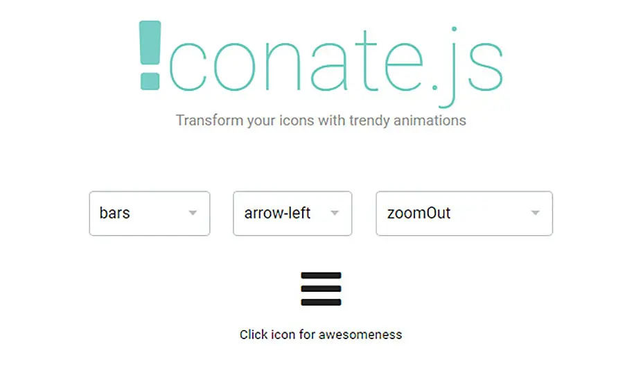 Iconate.js 能够让你的转场动效更加富有生命力,产生更加愉悦的效果。它可以同Font Awesome 联动,还能同 Glyphicons 甚至你的自制图标搭配起来使用。