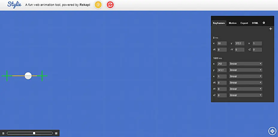 Stylie 是一款有趣的工具,其中内置的4个选项卡分辨用来控制关键帧、缓动、导出、HTML,让你轻松搞定动效。