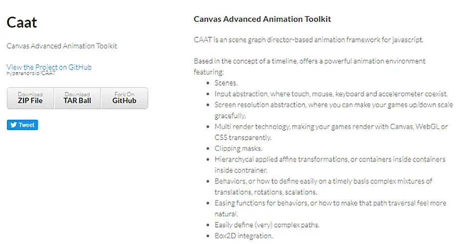 CAAT(Canvas Advanced Animation Toolkit)是一款同JS协同的优秀框架,集合了场景、渲染技术、剪辑蒙板和标准行为包等组件。