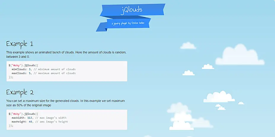 jqClouds 是一个非常简单的动效插件,能在生成移动的云朵,用来填充页面。当然,你也可以将云替换成其他的东西。