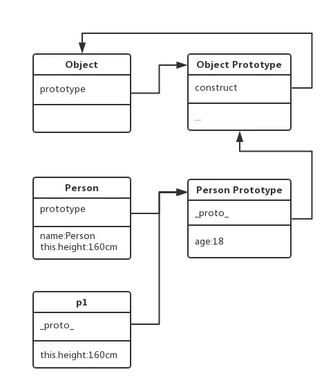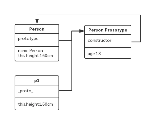 - Person Prototype直接变成了Object的一个实例,也就是说Person Prototype中有一个_proto_参数,指向Object Prototype