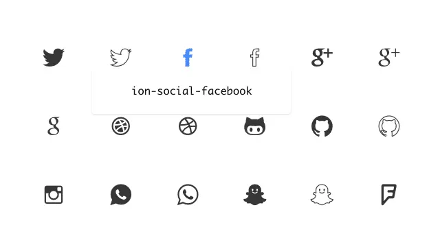 Ionicons 目前已经有超过 700 种图标图案,除了使用者界面开发会用到的按钮图标外,它也收录几个常见的社群网站图标,例如:Facebook、Twitter 和 Google+ ,对于想加入社群按钮来说就很方便,不用再额外载入其他图标拖慢网页开启速度。