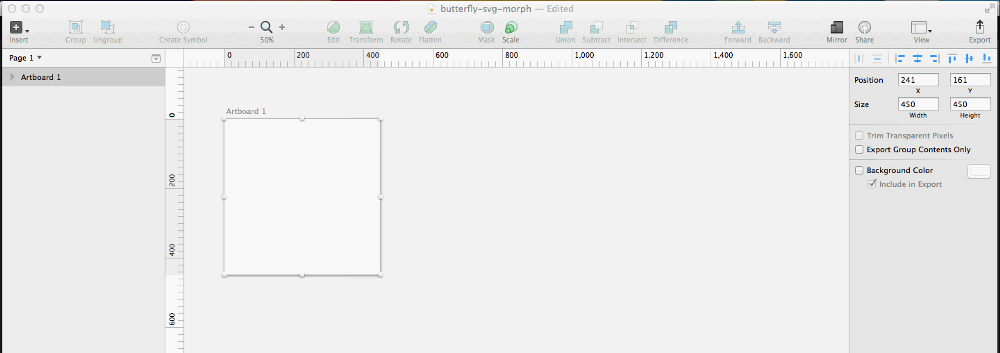 设计好之后,在画板的左边面板中选中蝴蝶图形。在Sketch的右下角,有一个导出选项,选择SVG格式点击导出按钮就可以了。