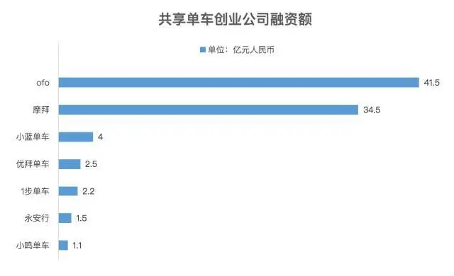 100offer 根据公开数据整理,市场上已出现超过 20 家共享单车公司,融资额超过 110 亿元人民币。其中,至少 8 家融资过亿。而作为领头羊,ofo 和摩拜融资均已过 D 轮,金额大概分别为 41.5 亿元人民币和 34.5 亿元人民币。