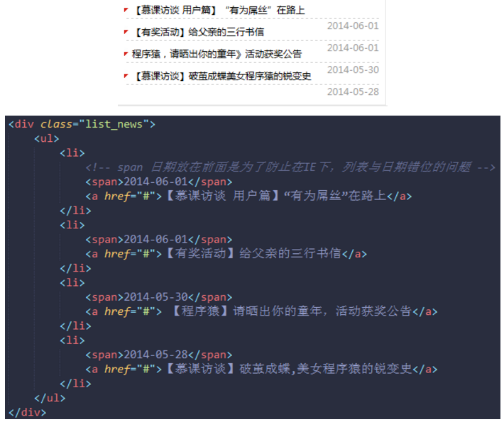 日期<span> 标签放在标题 <a> 标签之前即可
