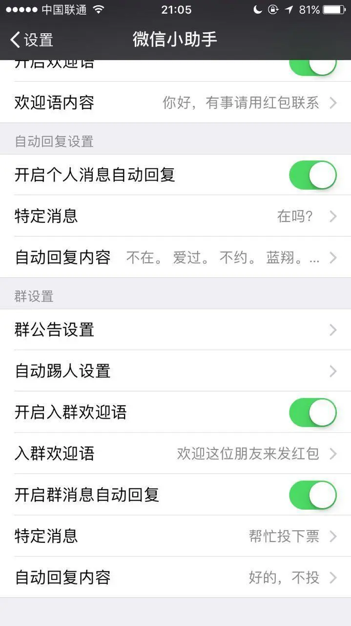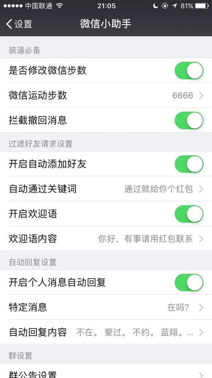 统一设置群公告、敏感词自动踢人、入群欢迎语 仅对自己创建的群有效