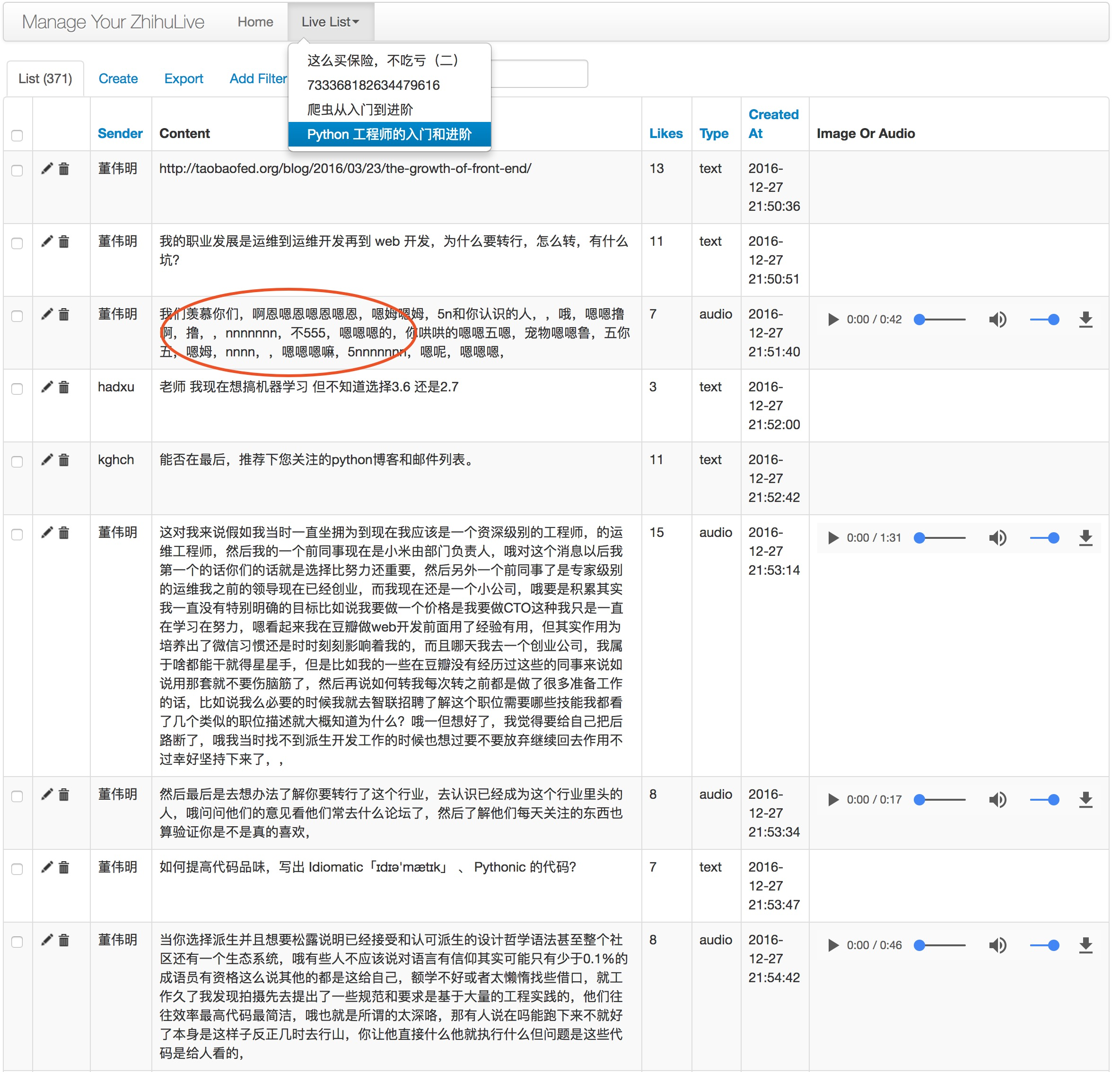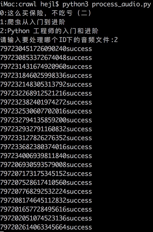 这一步是将音频文件下载下来,并通过ffmpeg转换为wav格式,然后提交给百度语音进行语音识别(您需要安装相关ffmpeg组件,并申请百度API的KEY,后续版本将改成多线程以提高效率),将识别结果写入mongo