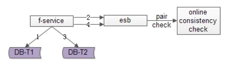 返回业务线数据插入成功时,数据还不一定插入到T2中,因此数据有一个不一致时间窗口(这个窗口很短,最终是一致的)
