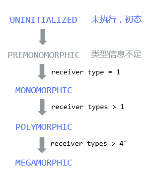 - 收到大于 1 种小于 4 种类型信息会迁移到多态模式(POLYMORPHIC)。