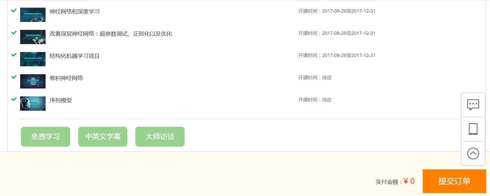 课程是以“吴恩达老师的录播课程视频 + AI 领域大师访谈”的形式完成的。你可以自主安排时间学习教学视频,请规划好自己的学习时间哦~