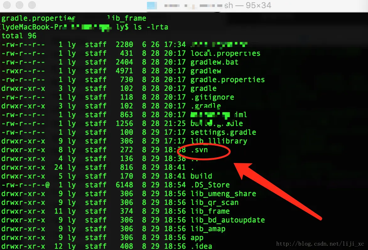 ls -lrta存在.svn目录,我们同命令行的方式删除它