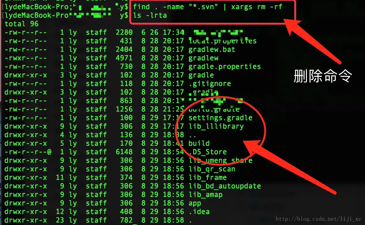 对于Mac系统,由于没有上面windows的操作,所以我们可以通过命令行的方式删除.svn文件夹。